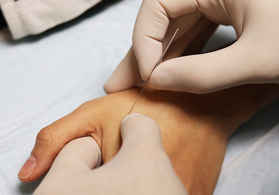Specifická miniinvazivní terapie zaměřená na odstranění tzv. spoušťových bodů (trigger points), což jsou malé tuhé uzlíky ve svalech, které bývají citlivé až bolestivé na pohmat. Tyto uzlíky vznikají zvýšeným svalovým napětím drobných svalových vláken s biochemickými změnami v okolí. Způsobují poruchu funkce svalu a následně i bolest, která může být lokální, ale může se vyskytovat mnohdy i ve vzdálené části těla než je samotný spoušťový bod (tzv. přenesené bolesti). Při aplikaci tenké akupunkturní jehly dochází k inaktivaci těchto spoušťových bodů. Zavedením jehly do spoušťového bodu dojde k jeho mechanickému poškození, vylití metabolitů do jeho okolí a následně k jeho vymizení. Proto dochází k výraznému analgetickému účinku. Kontraindikací této metody je antikoagulační léčba. Pokud berete léky na ředění krve, poraďte se nejprve se svým lékařem o vhodnosti této metody.